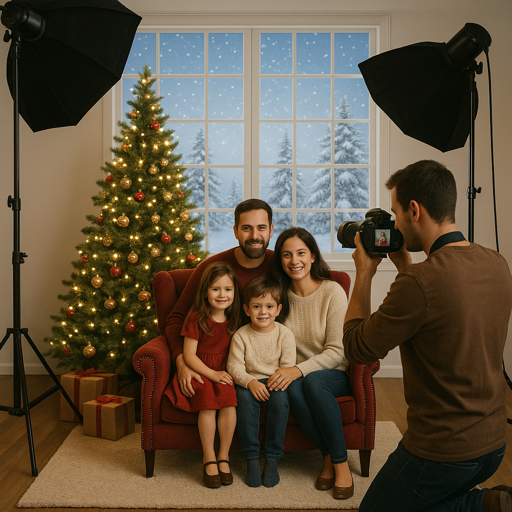 Vivez la magie de Noël en famille dans un décor festif et chaleureux. Poses classiques, moments de rires et photos pleines d’émotion pour des souvenirs à partager ou à offrir.